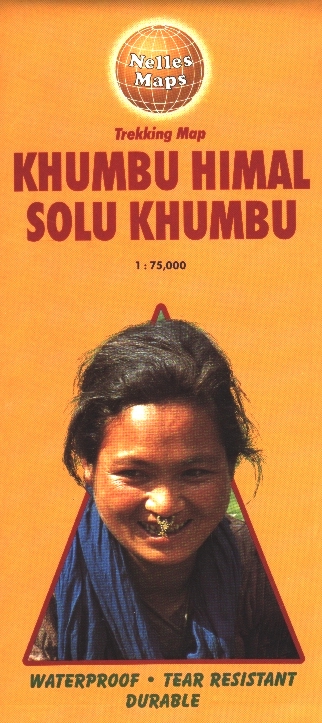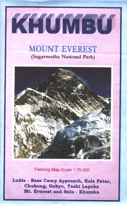 Diese Karte ist in Deutschland nicht erhältlich, aber in Nepal findet ihr sie an jeder Ecke. Auf der einen Seite der Karte ist ein Ausschnitt von Lukla bis zum Everest im Maßstab 1:75000, auf der anderen Seite wird der Ausschnitt von Namche Bazar bis zum Everest im Maßstab 1:50000 dargestellt. Beide Seiten sind jedoch nicht sehr zuverlässig und die Höhenlinien zum Teil falsch. Zur Orientierung ist die Karte jedoch gut. Außerdem sind zwei Ortsübersichten von Lukla und Namche Bazar mit vorhanden.