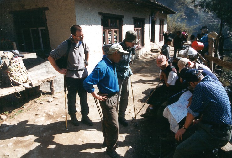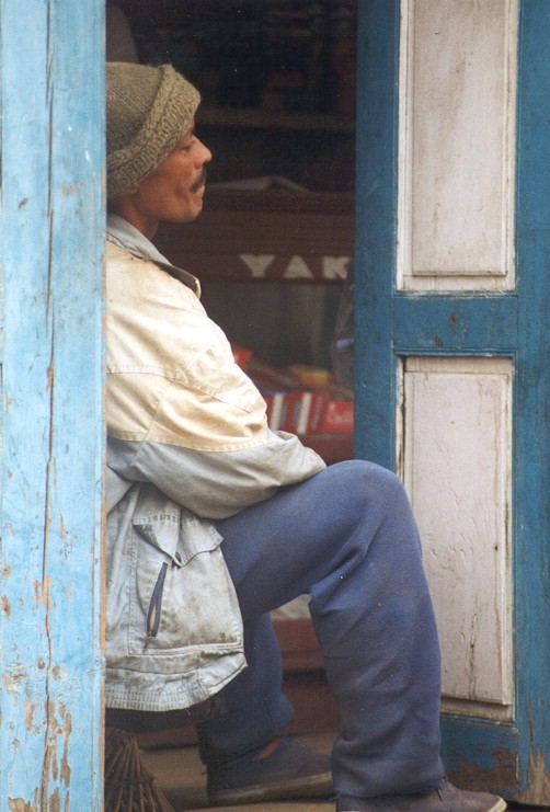 Fuß oder mit Yaks bewältigt wird. Man trifft niemanden, der nicht irgendetwas