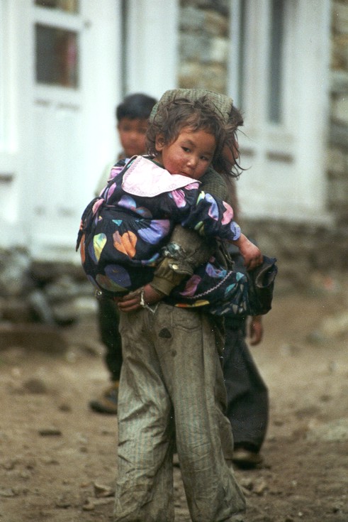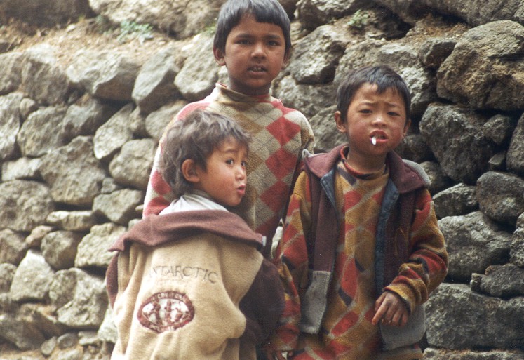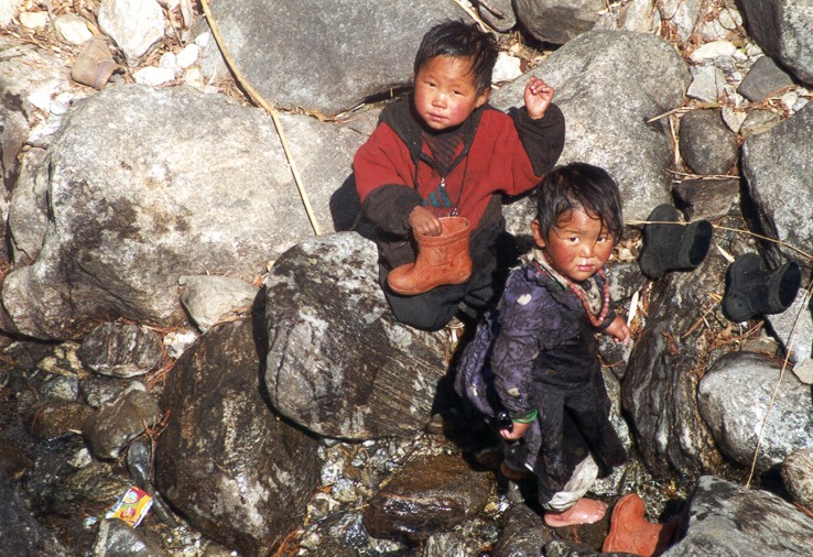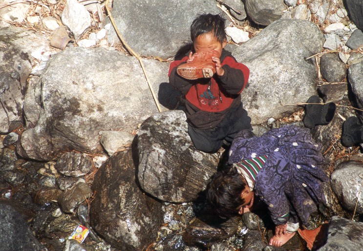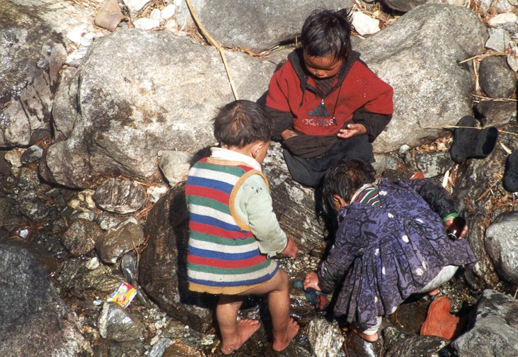 In der Nähe von Phakding sehen wir dann Kinder, die im eiskalten Fluss