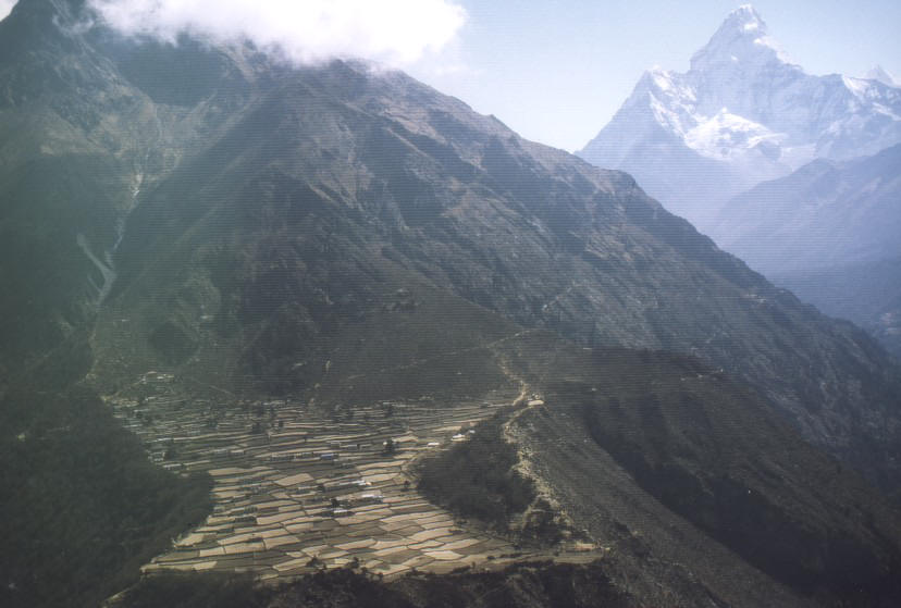 Auf der rechten Seite sieht man den Weg von Pangboche nach Phortse, auf der linken Seite