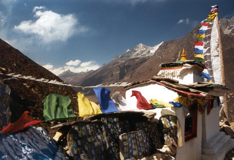 Eingangsstupa zum Klostergelände mit Blick zum Cho Oyu