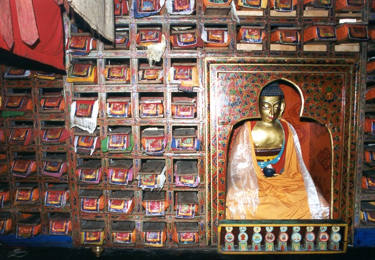 alten buddhistischen Gebetsbüchern, Bildern, Figuren. Für uns Westeuropäer