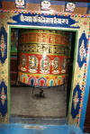 an einer Mauer aus Manisteinen mit eingemeißelten Mantras zunächst bis zu den