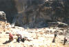 Plötzlich ein kurzer, steiler Abstieg in eine wilde Schlucht mit bunten Gemälden an