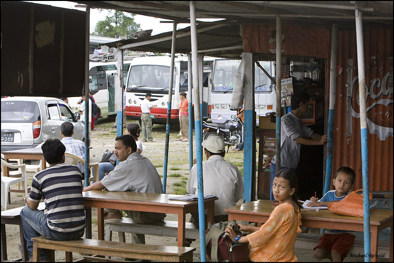 nächsten Morgen um 7:00 Uhr mit dem Bus zurück nach Kathmandu geht.