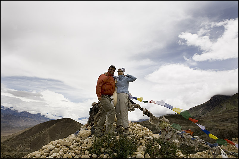 Gebetsfahne aufgehängt und mit Mayas Apfelbrände begießen wir den höchsten Punkt
