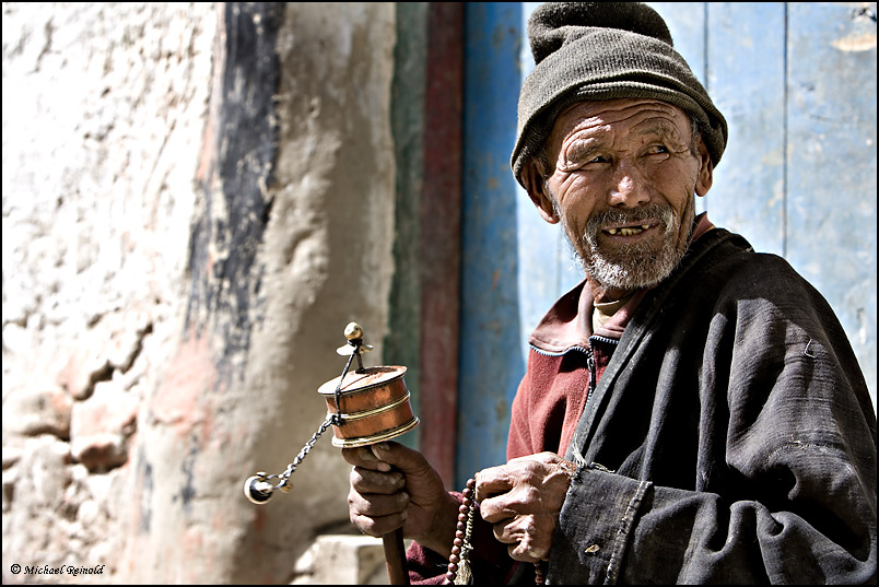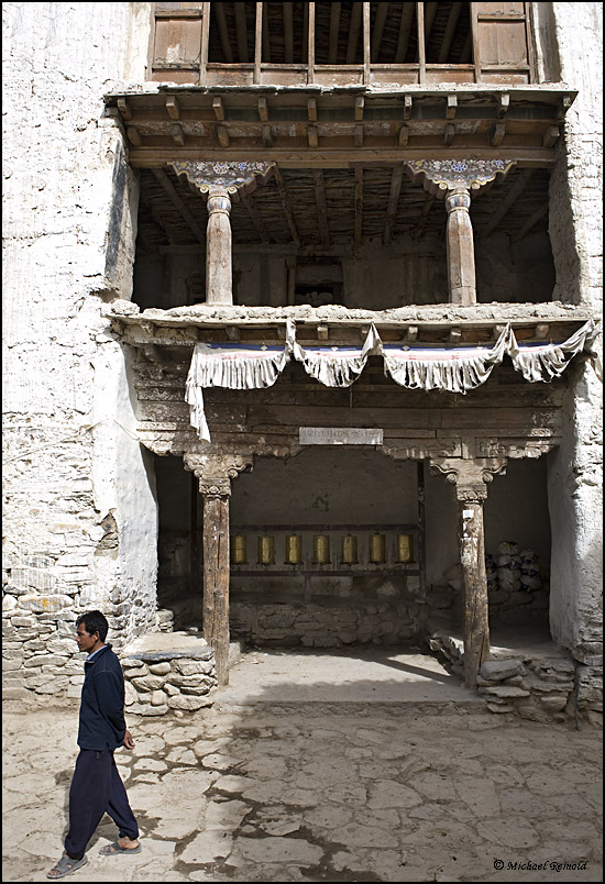 drehen die rund ums Kloster befestigten 108 Gebetsmühlen. Erst dann betreten wir