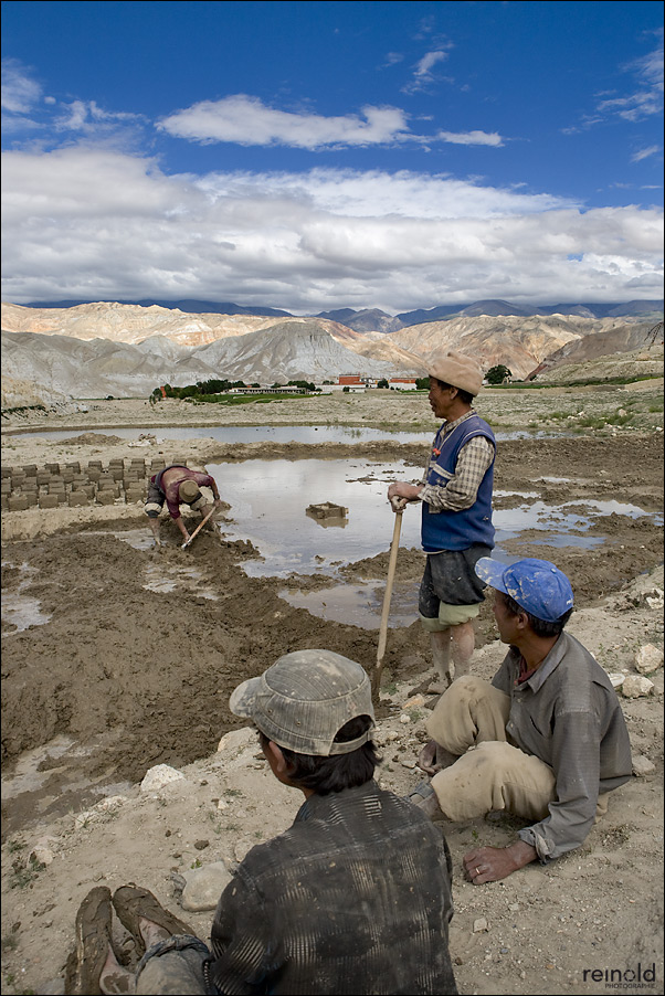 winken uns zu sich ran und erklären uns, dass sie hier Lehmziegel für einen