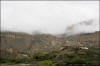 sieht es nach Regen aus. Dicke Wolken liegen über der Bergkette, die wir heute
