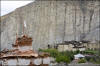 weiße Mauer schon von weitem erkennbar ist. Ein Hubschrauber, der auf einem