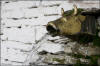hier ist außerhalb der Gompa ein bronzener Wasserspeier, aus dem das Wasser
