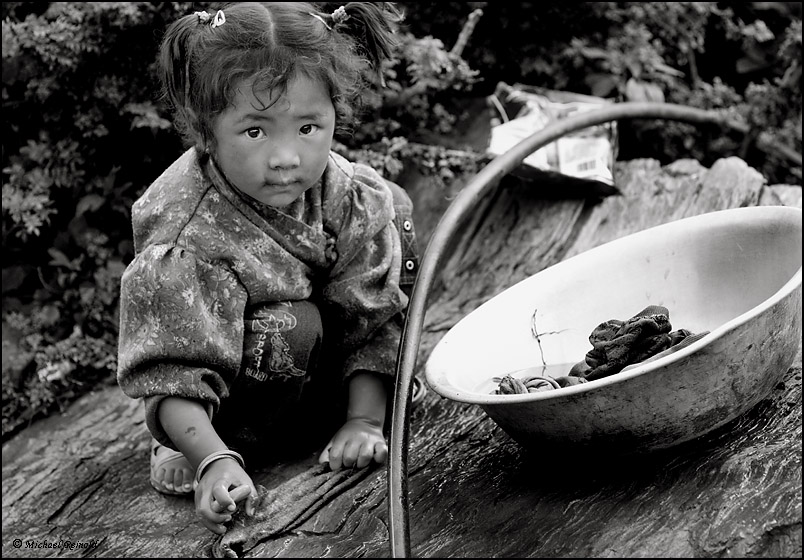 wieder eine Flussdurchquerung an. Aber der Narshing Khola macht es uns heute