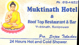 Hotel Muktinath, am talseitigen Ortsrand, bekommen wir ein Zimmer sogar mit