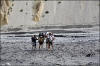 die beste Stelle für eine Überquerung ist. Schuhe und Hose werden ausgezogen.