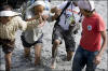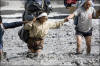 angelaufen. Dabei sind sie so stürmisch, dass ein kleiner Junge von einer Mauer