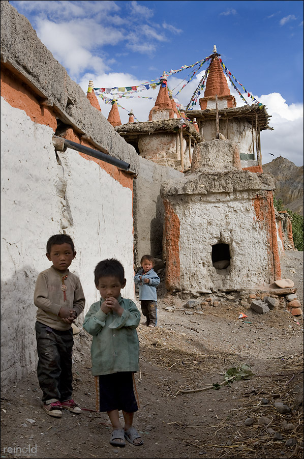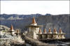 stehenden Stupas, die alle mit der für Mustang typischen Streifenbemalung