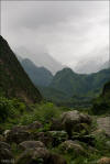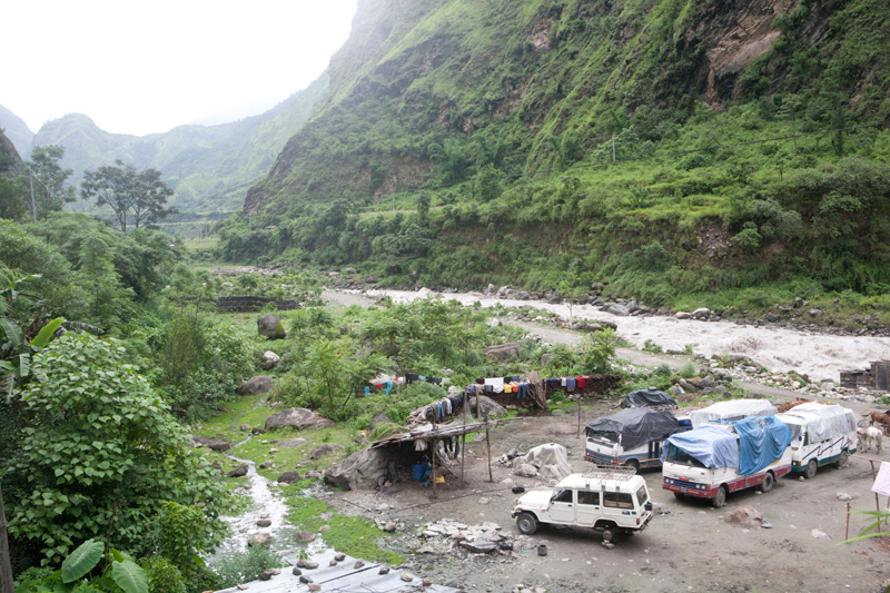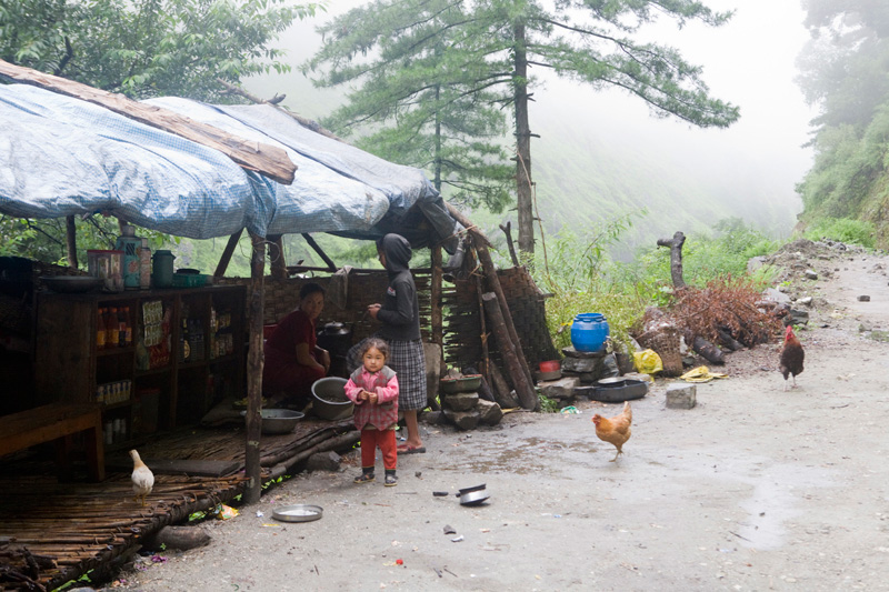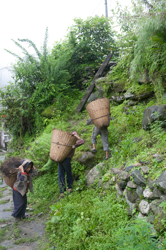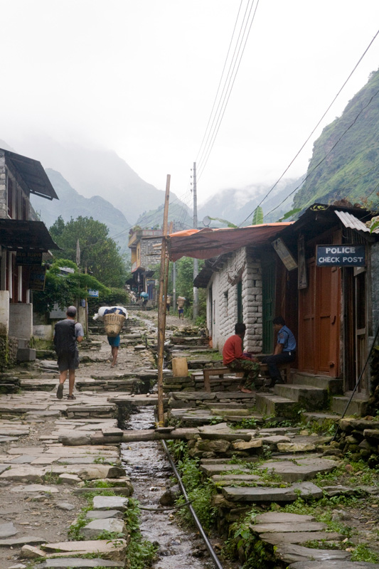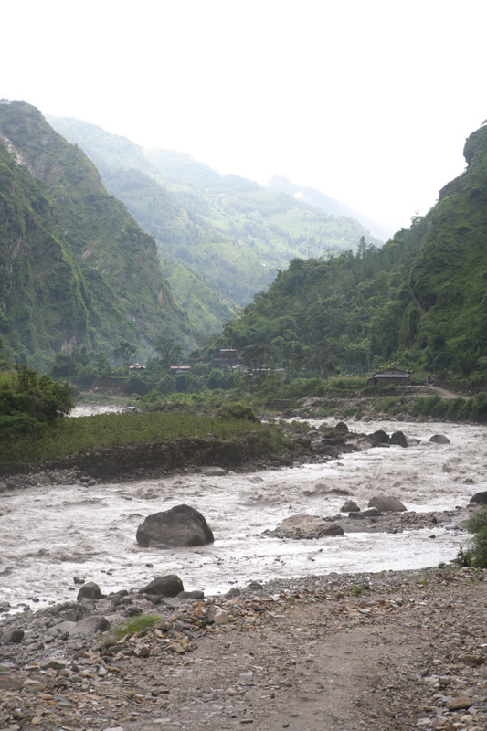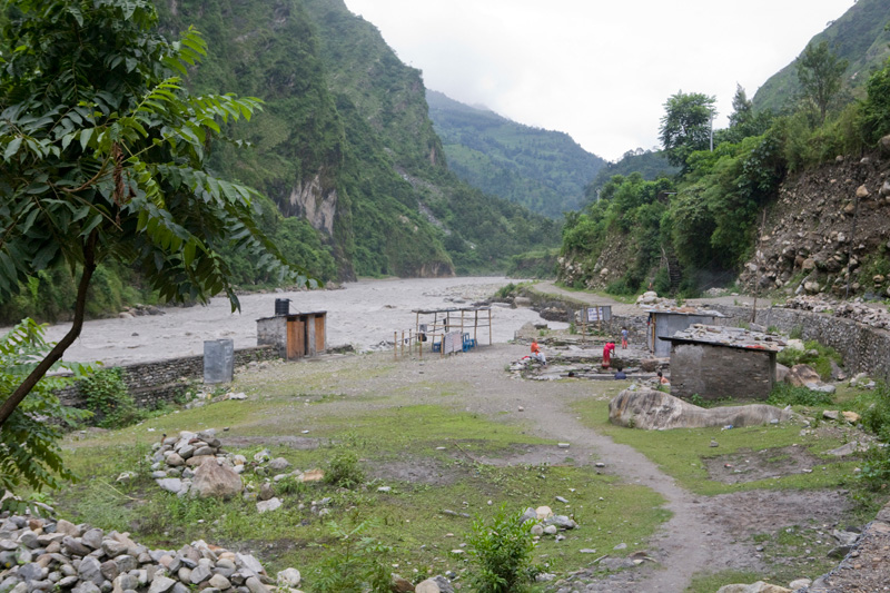 feuchten Sachen und marschieren um 7:30 Uhr los in Richtung Tatopani. Der Regen
