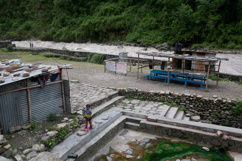 wo es heiße Quellen und mehrere Badebecken gibt. Tatopani heißt auf Deutsch "Heißes