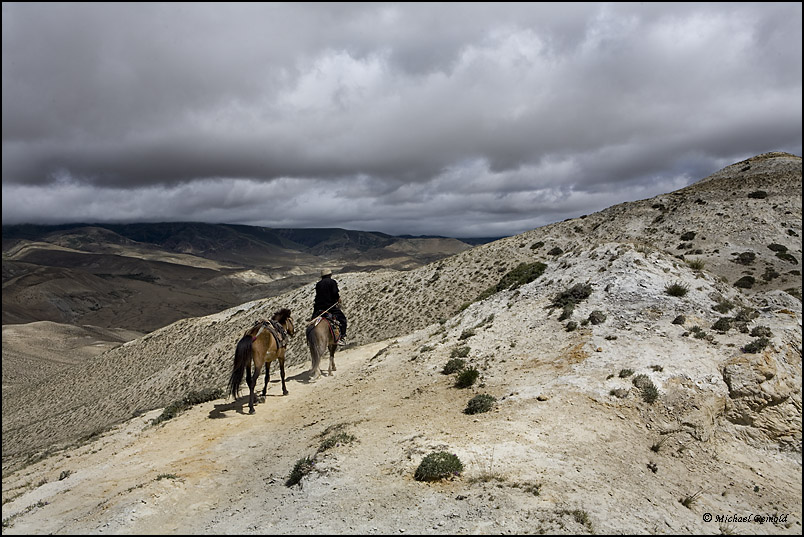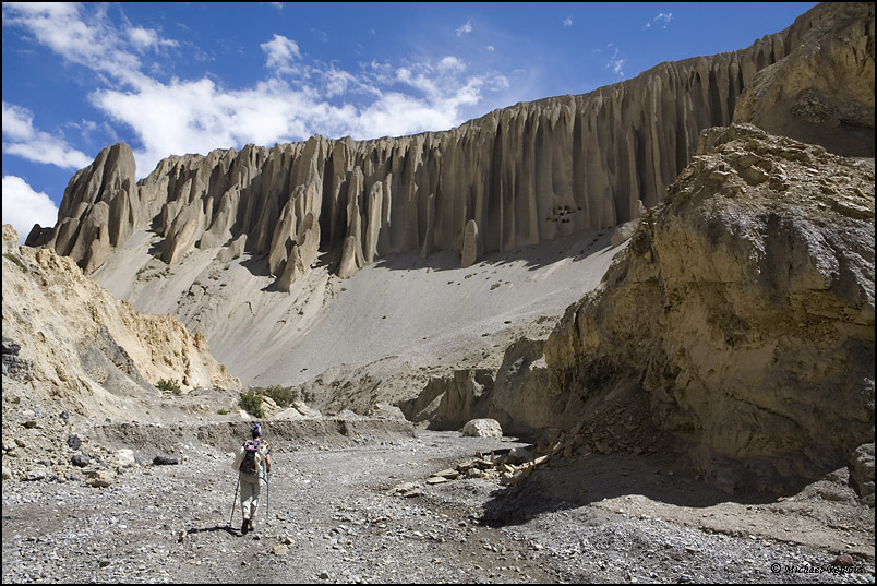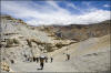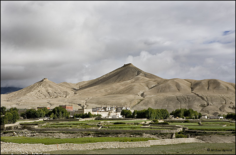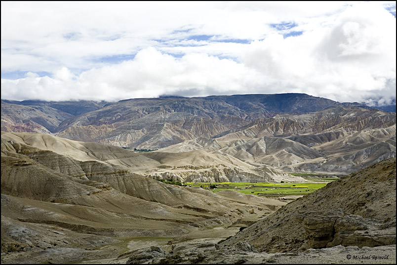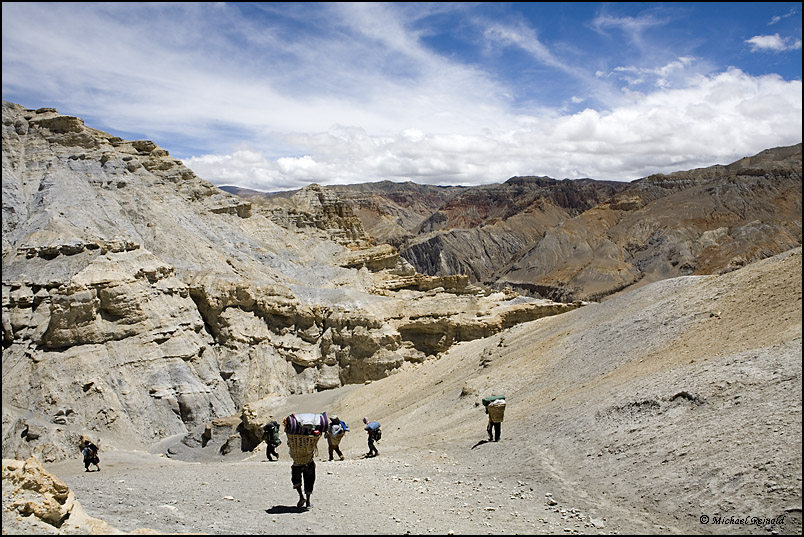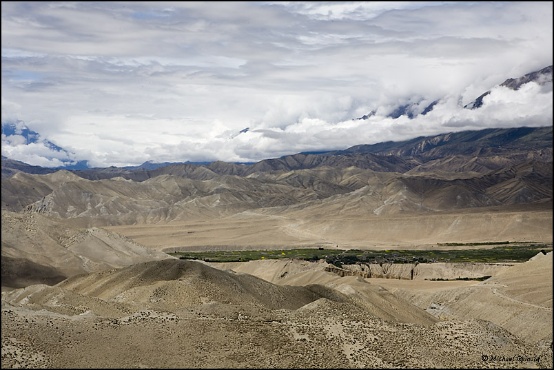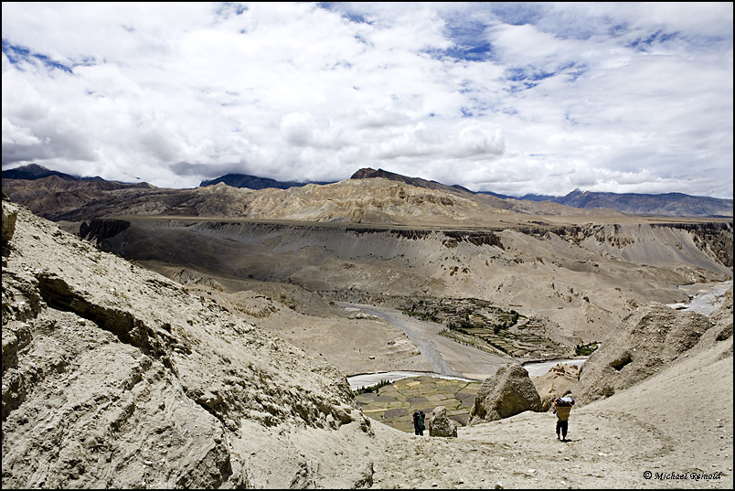 Tsarang. Am Ende des Plateaus wartet ein sandiger und staubiger Abstieg durch