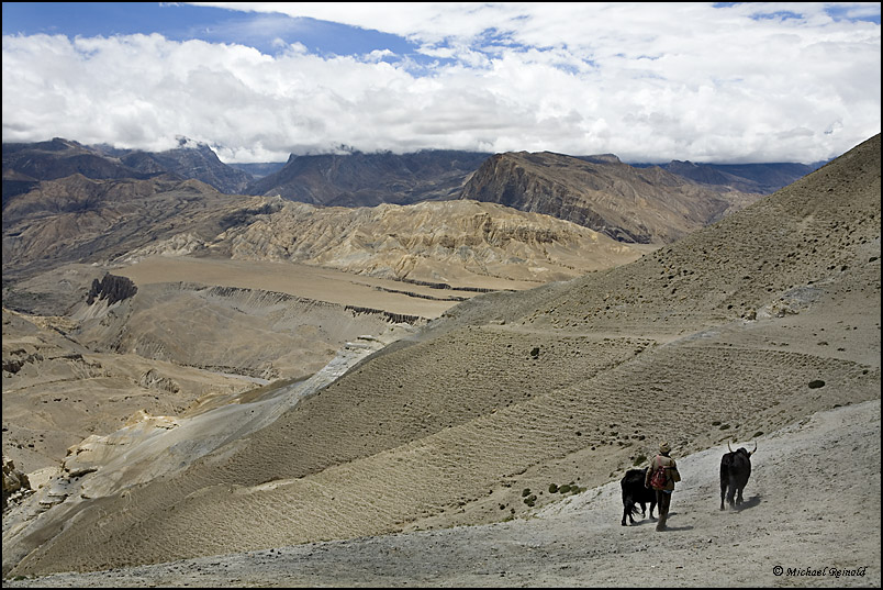 vor der Schlucht von einem Lopa mit seinen zwei Yaks überholt. Die Tiere machen