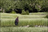 vollem Gang und überall auf den Wegen liegen Getreidereste, die den Weg sehr